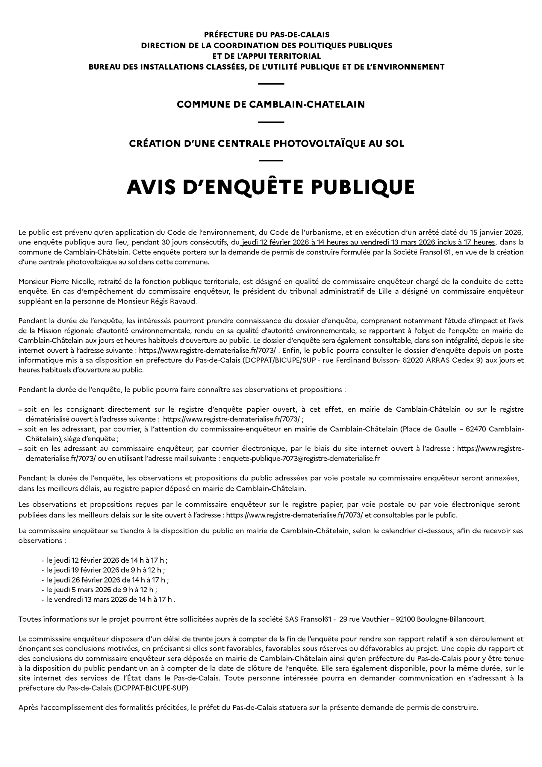 Je vous souhaite la bienvenue sur le site officiel de Camblain-Châtelain-La-Ferté.